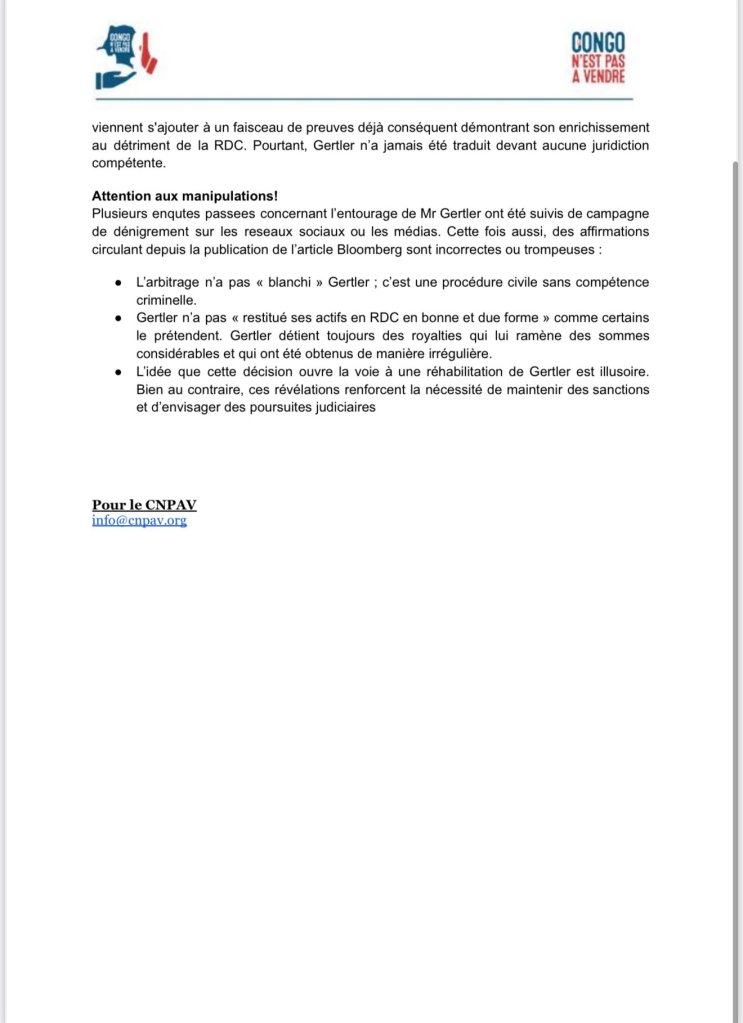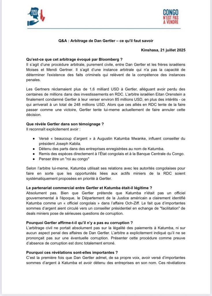 « L’arbitrage n’a pas « blanchi » Dan Gertler, c’est une procédure civile sans compétence criminelle. »