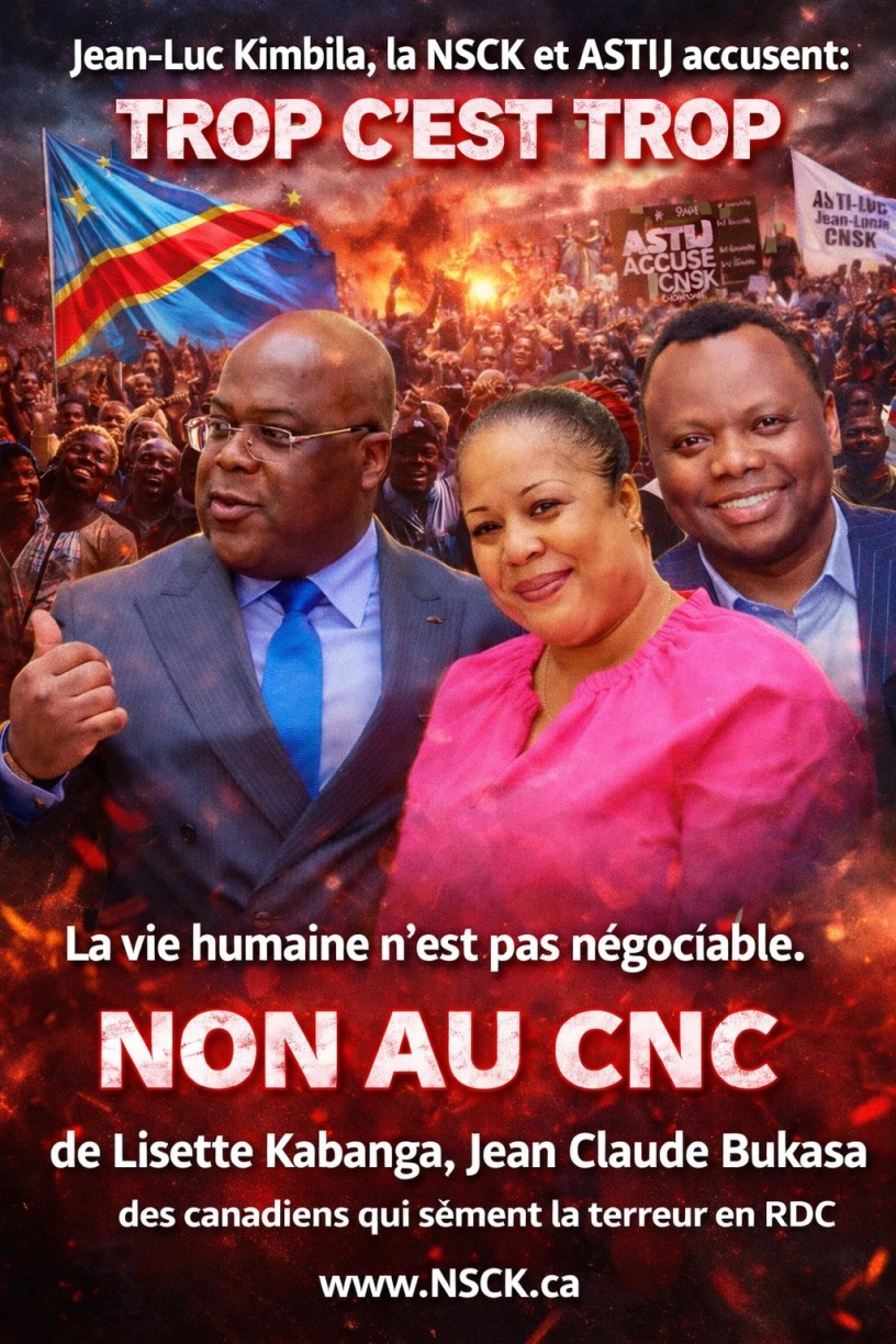 La Nouvelle Société Civile du KONGO (NSCK) avec Jean-Luc Kienge Kimbila, président et Freddy Mulongo Mukena, Secrétaire Général et Exécutif, est au front dans la plainte contre des Canadiens qui torturent, arrêtent et emprisonnent au KONGO.